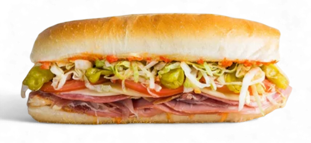 Layers of savory salami, tender ham, and zesty pepperoni topped with crisp lettuce, fresh tomatoes, and onions. Finished with oil, vinegar, and a touch of black pepper and salt.
