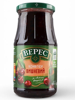 Veres Cherry Preserves offer a premium blend of high-quality cherries preserved in a carefully controlled process. Each 620g jar maintains the fruit's natural flavor and nutrients, ensuring a rich taste. This product is ideal for enhancing baked goods or as a topping, providing a source of antioxidants and dietary fiber.